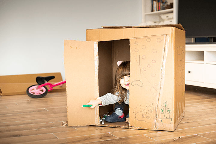 Želite još jednu kul ideju koju će vaše dete sigurno voleti? – Izgradite kuću u kući zajedno! ???? Možda je upravo stigla velika porudžbina? Karton možete odlično iskoristiti – tako što ćete napraviti kućicu od kartona za svoje dete ili decu. Model koji sami napravite je odličan za kreiranje sa celom porodicom, a rezultat će pružiti dane zabave. Mama crta građevinske planove, tata seče vrata i prozore (najbolje sekačem za kutije), vaš mališan šara svoj novi dom voštanim bojicama ili bojama za slikanje prstima. Kuća se može koristiti i za druge igre, na primer žmurke ????